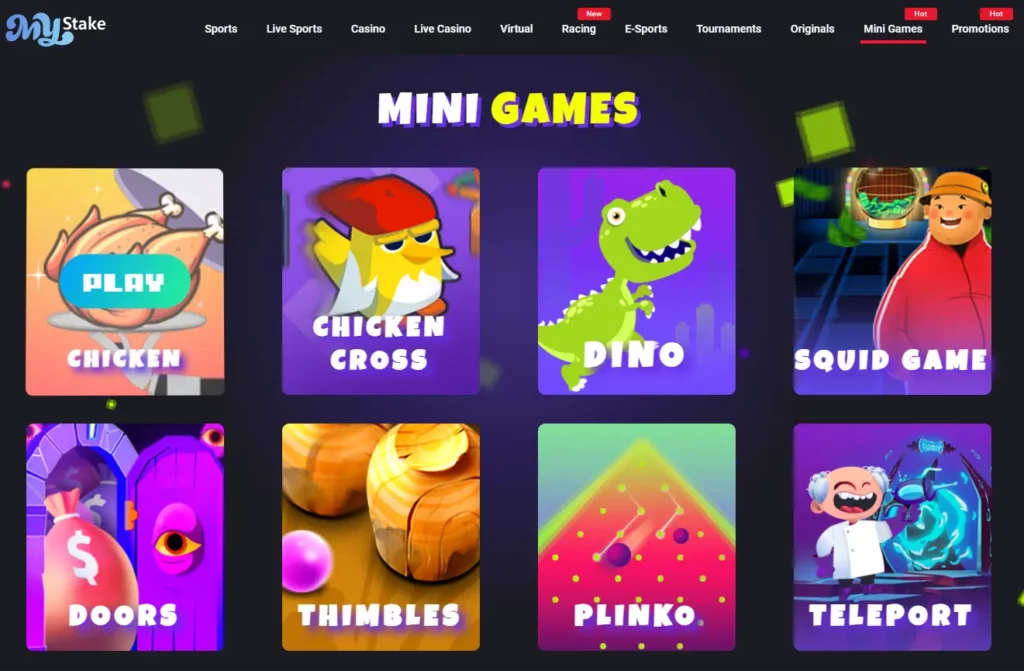 Pour jouer à Chicken : visitez MyStake Casino et trouvez Chicken dans la section mini-jeu.